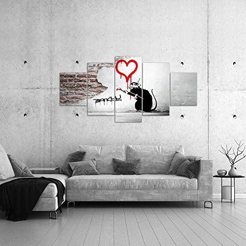 Runa Art - Quadri Banksy Graffiti Ratti 5 Pezzi XXL Decorazione Murale Design Nero Grigio Rosso 040451b