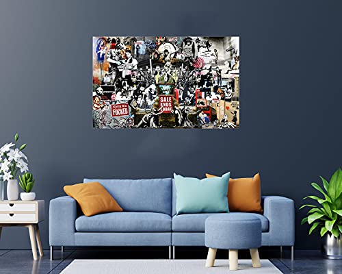 Quadri Bansky Stampa Su Tela Collage series Street Graffiti Art Quadro Banksy Quadro Moderno Soggiorno Decorazione Murale XXL Con Cornice 80x120cm