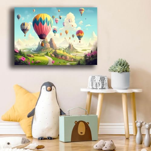 Quadri Cameretta MONGOLFIERE COLORATE Quadro moderno di tela da Parete XXL grande Stampa su tela canvas Camera da letto Decorazione Murale muro Arredo Cucina (50x70 cm, 5)