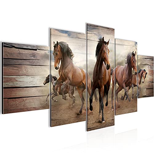 Runa Art - Quadri Cavalli 200 x 100 cm 5 Pezzi XXL Decorazione Murale Design Beige 036051b