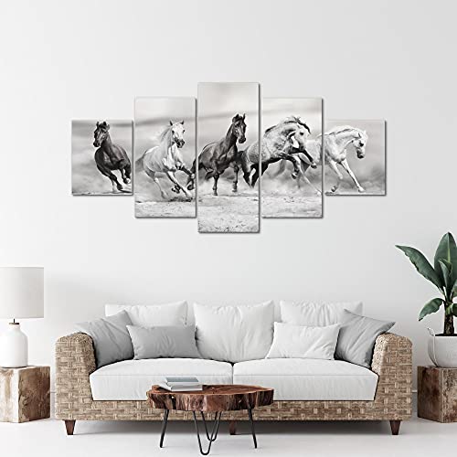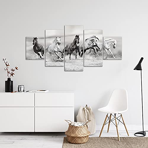 Runa Art - Quadri Cavalli 200 x 100 cm 5 Pezzi XXL Decorazione Murale Design Bianco e Nero 014151c