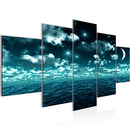 Runa Art - Quadri Cielo Notturno 200 x 100 cm 5 Pezzi XXL Decorazione Murale Design Turchese 600151b