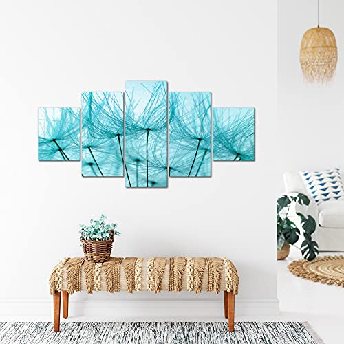 Runa Art - Quadri Dente Di Leone 200 x 100 cm 5 Pezzi XXL Decorazione Murale Design Blu 209951b