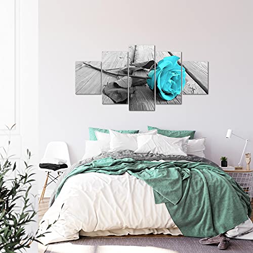 Runa Art - Quadri Fiori Rose 200 x 100 cm 5 Pezzi XXL Decorazione Murale Design Turchese Grigio 204451c