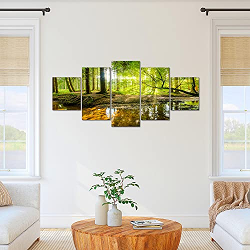 Runa Art - Quadri Foresta paesaggio 200 x 100 cm 5 Pezzi XXL Decorazione Murale Design Verde 611751a