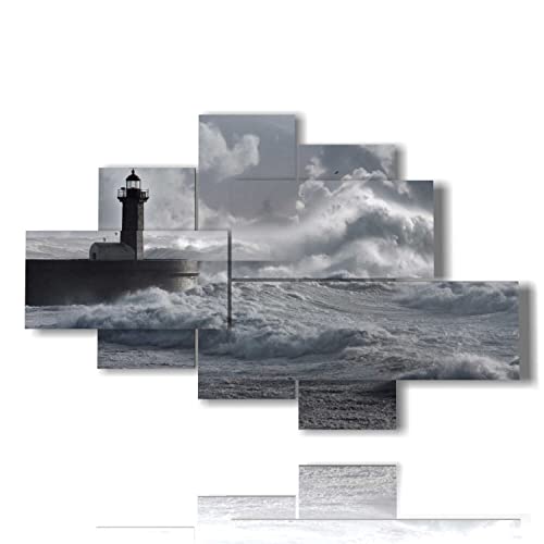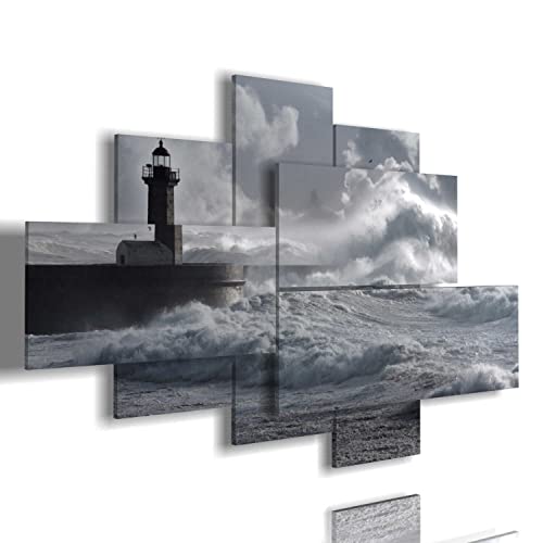 quadri mare in tempesta con faro é un quadro moderno tridimensionale composto da 6 pannelli. Dimensione totale (LxHxS): 146cm x 94 cm x 5.6 cm. (3 verticali 3 orizzontali)