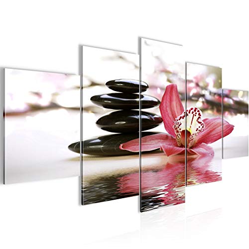 Runa Art - Quadri Orchidea Fiori 200 x 100 cm 5 Pezzi XXL Decorazione Murale Design Rosa Grigio 204251a