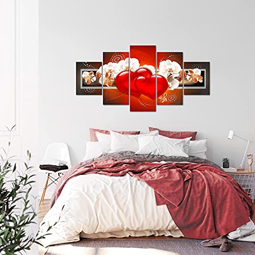 Runa Art - Quadri Orchidea Fiori 200 x 100 cm 5 Pezzi XXL Decorazione Murale Design Rosso 401451a