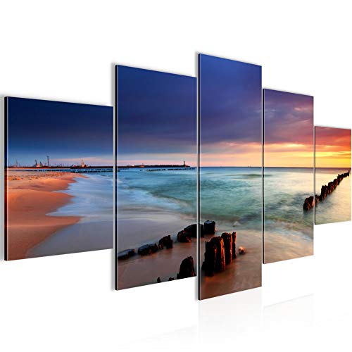 Runa Art - Quadri Spiaggia Mare 200 x 100 cm 5 Pezzi XXL Decorazione Murale Design Blu Rosa 607851a