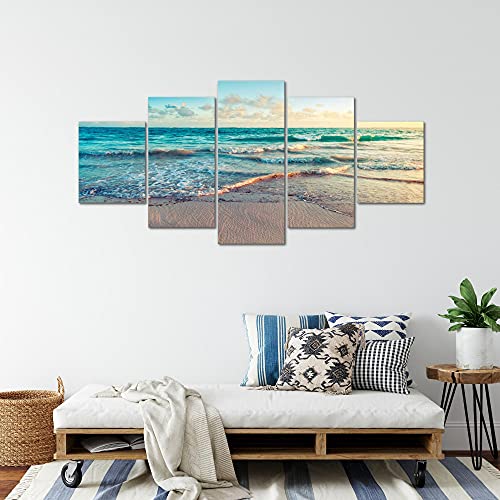 Runa Art - Quadri Mare Spiaggia 200 x 100 cm 5 Pezzi XXL Decorazione Murale Design Blu Beige 015551a