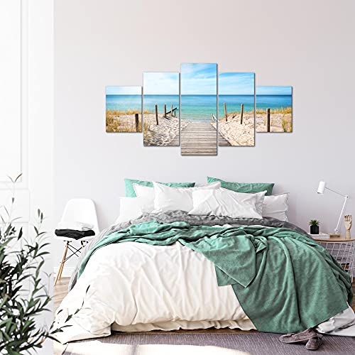 Runa Art - Quadri Spiaggia Mare 200 x 100 cm 5 Pezzi XXL Decorazione Murale Design Beige Blu 609751a