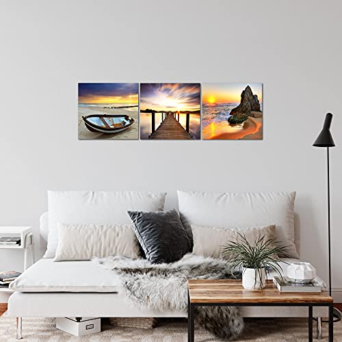 Runa Art - Quadri Tramonto Spiaggia 120 x 40 cm Murale Tela Non Tessuta Arancia Multipanello Moderni Decorazione 605933a