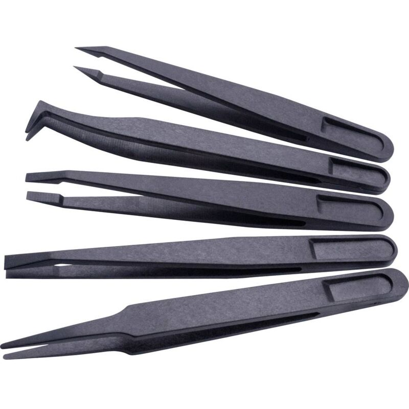 Dettagli tecnici Ambito di applicazione (cacciavite) ESD Dimensione del prodotto, larghezza 115 mm Forma delle punte (pinzette) Piatte-larghe, Piatte, piegate, Arrotondate Materiale Plastica Peso 5 g Tipo prodotto Pinzetta Set di pinzette ESD Quadrios 5 pezzi conduttivi Realizzate in plastica nera conduttiva, queste pinzette soddisfano tutti i requisiti nel settore dell'elettronica, della tecnologia e dell'assistenza. Un'altra caratteristica molto importante è la conformità alle norme di legge DIN EN 61340-5-1 (requisiti per la protezione contro i fenomeni elettrostatici). Solo in questo modo è possibile garantire che i componenti possano anche garantire il funzionamento, vale a dire mantenere una tecnica preziosa dagli shock elettrici. Testo tradotto automaticamente. Punti di forza e dettagli Cinque diverse pinzette ESD conduttive nere (resistenza superficiale 10^5... 10^6 Ohm) - conforme a DIN EN 61340-5-1 Perfetto per lavorare su elettronica e tecnologia sensibili (dispositivi