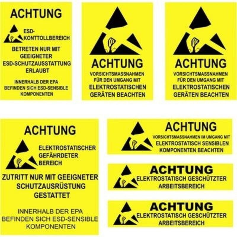 Dettagli tecnici Ambito di applicazione (cacciavite) ESD Colore Giallo, Nero Contenuto 1 pz. Dimensione del prodotto, larghezza 140 mm Dimensione del prodotto, lunghezza 140 mm Dimensioni (L x L) 140 mm x 140 mm Famiglia colore Giallo, Nero Materiale Plastica Tipo prodotto Etichette di avvertimento ESD Contenuto: 7 adesivi Modello: Tedesco Adesivo Quadrios foglio ESD avvertimento tedesco Per l'identificazione di aree ESD e istruzioni per l'azione, i sette adesivi su questo foglio di adesivi sono particolarmente adatti. Le stampe di avviso ben leggibili sono comprensibili e rapidamente rilevabili. Fornitura: 1 x foglio con 7 diversi adesivi ESD stampati, dimensioni (foglio): 140 mm x 140 mm, dimensioni decalcomanie: 40 mm x 55 mm / 55 mm x 65 mm / 70 mm x 20 mm. Note: Le dimensioni indicate si riferiscono a un foglio - le dimensioni singole delle sette decalcomanie incluse sono richiamabili nella scheda tecnica. Testo tradotto automaticamente. Punti di forza e dettagli Sette diversi