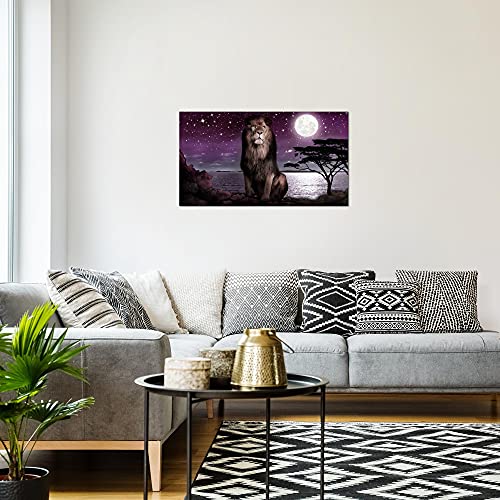 Quadro Africa Leone Moderni Murale - Made In Germany - Luna Grigio Viola Corridoio 022914b