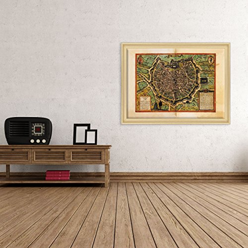 Quadro su Tela Canvas INTELAIATO - con Cornice - Mappa Antica - Milano Medioevo Medioevale - Mediolanum - 50x70cm - Stile Contemporaneo Legno Naturale - (cod.307)