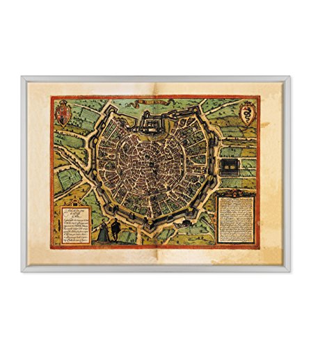 Quadro su Tela Canvas INTELAIATO - con Cornice - Mappa Antica - Milano Medioevo Medioevale - Mediolanum - 50x70cm - Stile Moderno Bianco - (cod.307)