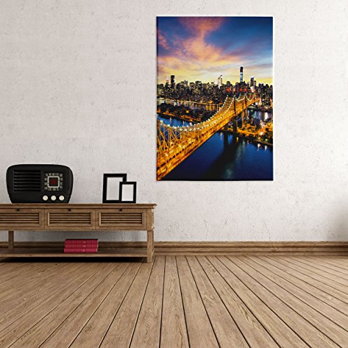 QUADRO SU TELA CANVAS - INTELAIATO - PRONTO DA APPENDERE - New York City Brooklyn Ponte - Manhattan - Fiume Hudson - USA America - 30x40cm - Senza Cornice - (cod.1851)