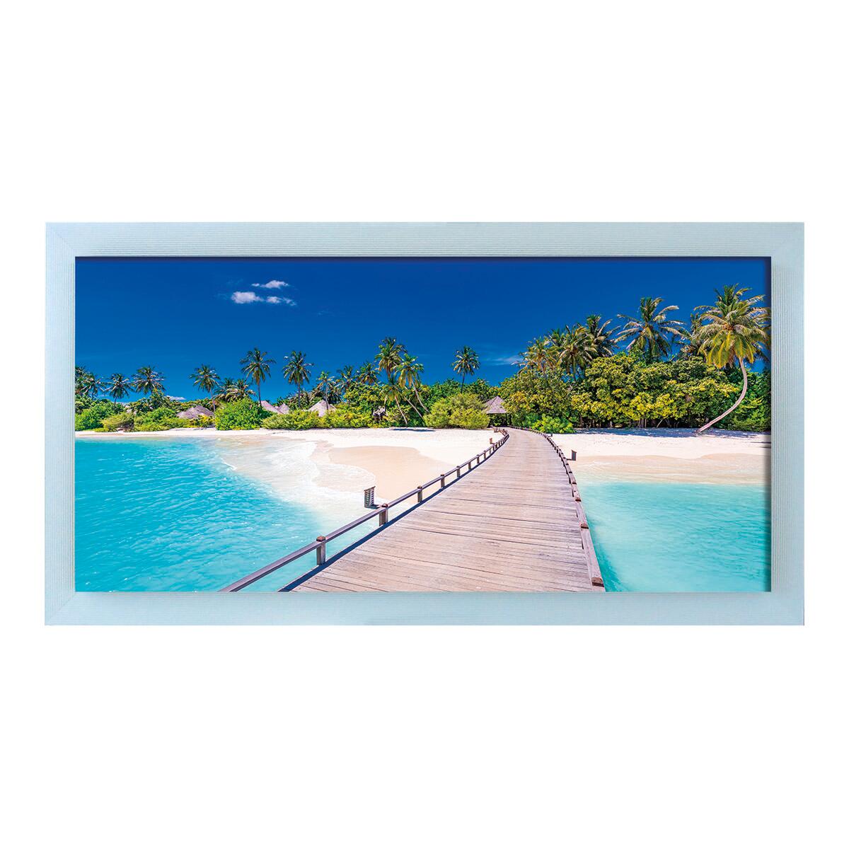Quadro su tela con cornice bianca Silvia, Caraibi, misura esterna 76x136.