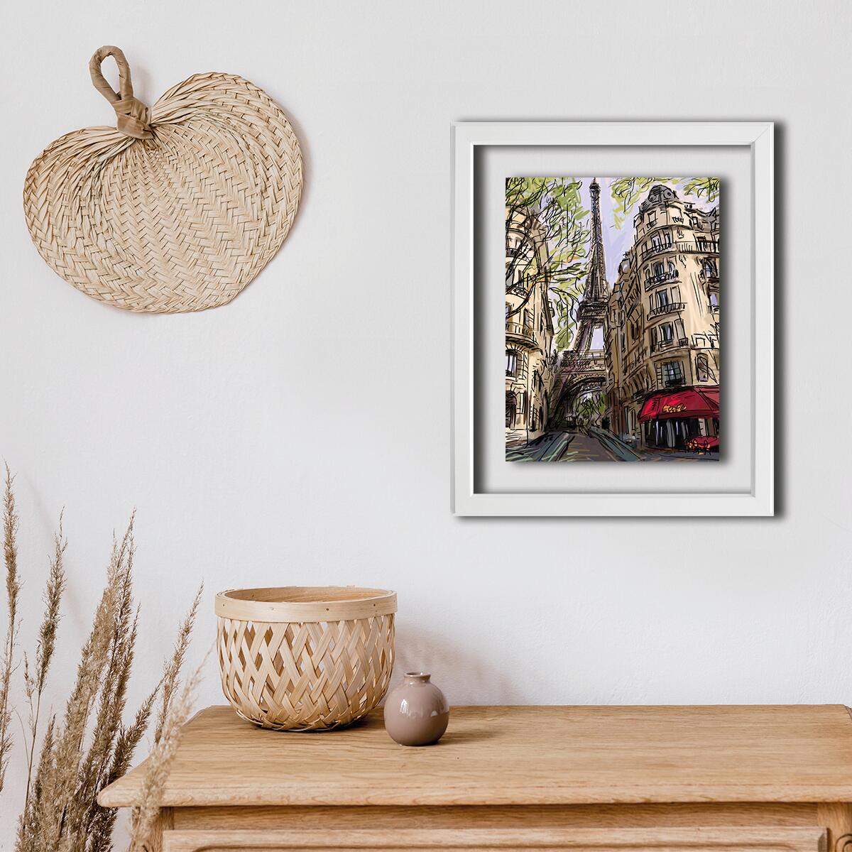 Quadro stampato su vetro con cornice bianca, Torre Eiffel, 40x50