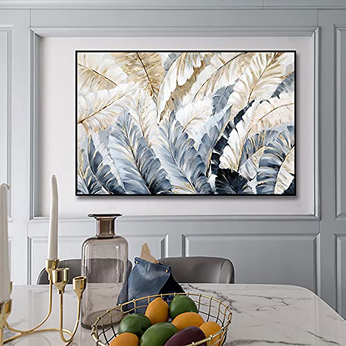 ZNYB Quadro Dipinto A Mano su Tela Abstract Golden Leaf Flower Wall Art Canvas Painting Nordic Nero Piume Bianche Poster Stampa Immagine da Parete per Living Room Decor