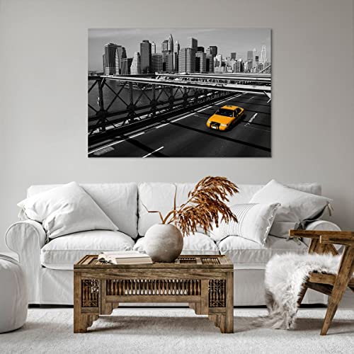 Quadro su tela - Elemento unico - New York Manhattan ponte di Brooklyn taxi - 100x70cm - Pronto da appendere - Home Decor - Stampe su Tela - Quadri Moderni - completamente incorniciato - AA100x70-0417