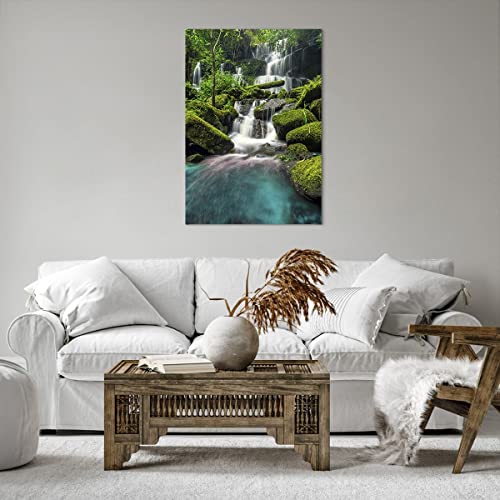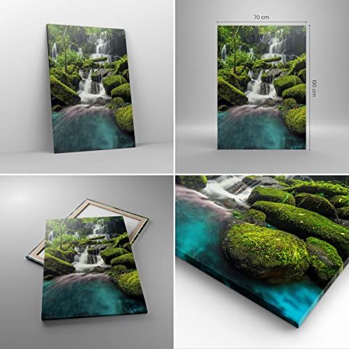 Quadro su tela - Elemento unico - parco cascata acqua - 70x100cm - Pronto da appendere - Home Decor - Stampe su Tela - Quadri Moderni - completamente incorniciato - PA70x100-3754