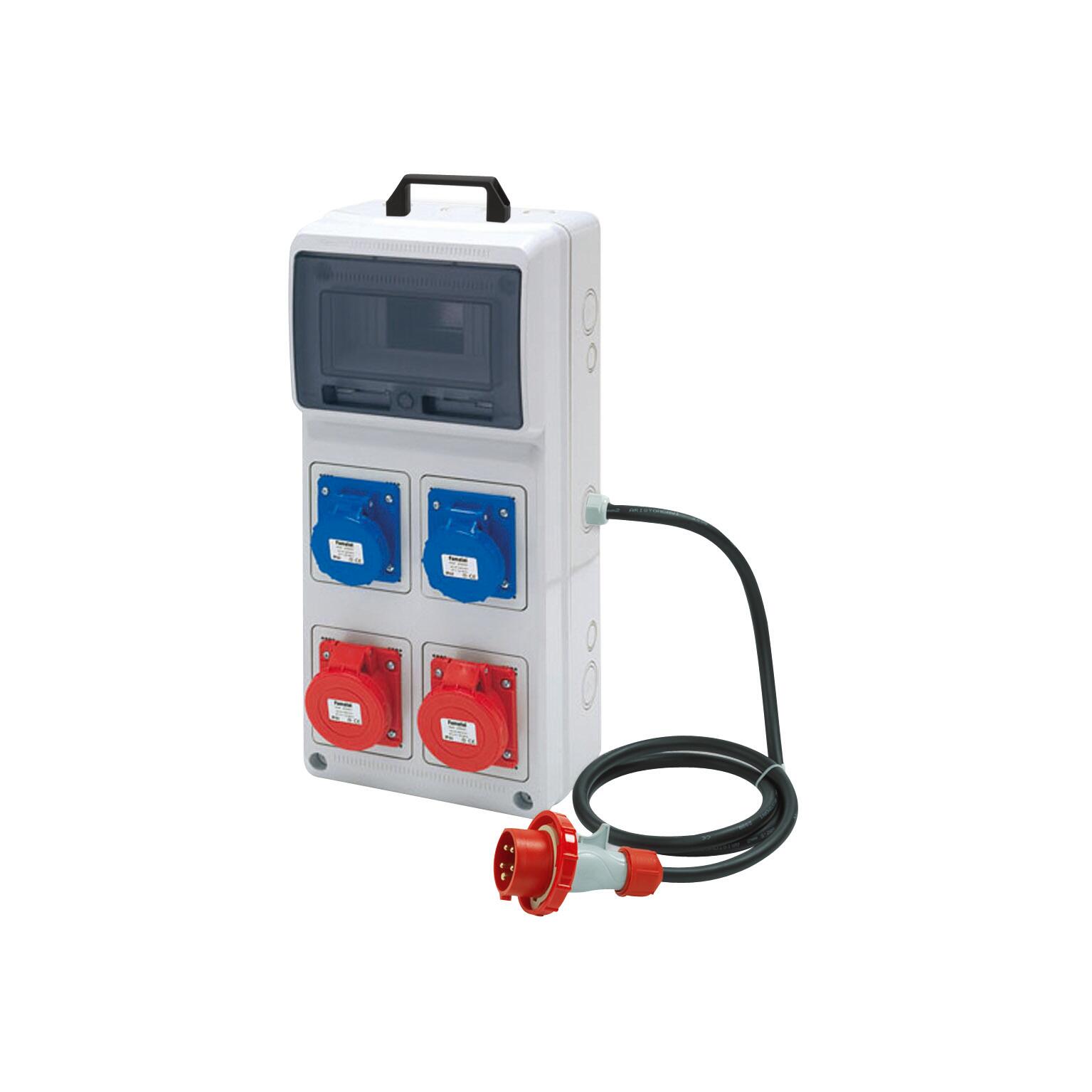 Completo di due prese 4P 16A 400V, due prese 3P 16A 230V, un interruttore magnetotermico differenziale 4P 16A, con cavo di collegamento 5X2.5mm