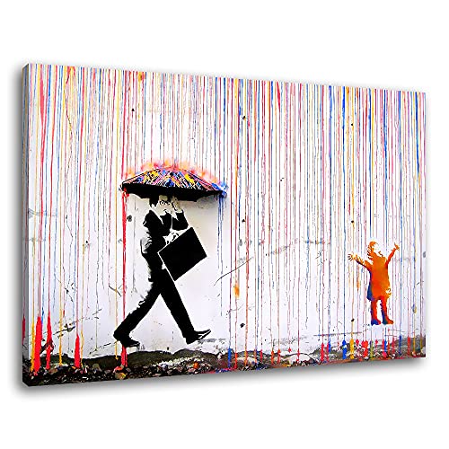 Quadro Moderno Banksy - Pioggia di colori - Vari Formati Stampa su Tela Canvas Arredamento Arte Astratto XXL Arredo per Soggiorno Salotto Camera da Letto Cucina Ufficio Bar Ristorante (cm 70x50)