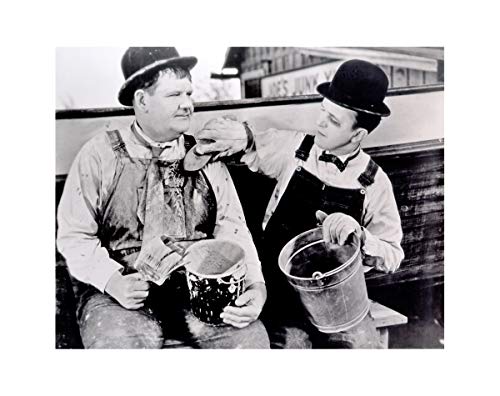 Quadro Moderno raffigurante i famosi comici Stanlio e Ollio durante le riprese del film "Trainati in un buco"