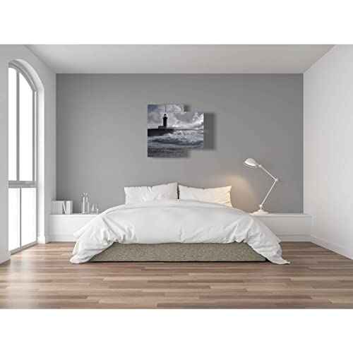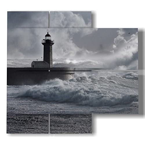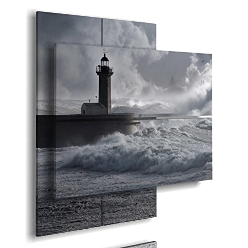 quadri mare in tempesta con faro é un quadro moderno tridimensionale composto da 4 pannelli. Dimensione totale (LxHxS): 91cm x 85 cm x 5.6 cm. (2 verticali 2 orizzontali)