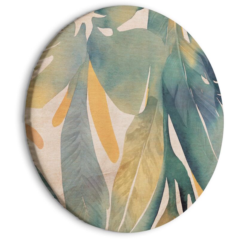 Quadri rotondi come decorazione straordinariaQuadro rotondo "Quadro rotondo - Acquerello esotico - Delicate piante tropicali appese nei colori verde e giallo su sfondo beige/Acquerello tropicale"? Perché no! Un quadro rotondo unico che si distingue dagli altri prodotti sul mercato è una proposta ideale per gli appassionati delle ultime tendenze. Forme delicate e arrotondate compaiono sempre più spesso nei nostri interni, sia nelle linee dei mobili che nei dettagli architettonici, oppure nelle decorazioni, e i quadri rotondi sono l'incarnazione di questa tendenza. Stai cercando una decorazione non standard la cui forma insolita e arrotondata attiri l'attenzione dei membri della famiglia e degli ospiti? Un'immagine circolare è la scelta perfetta! Durante la creazione di questo prodotto, abbiamo combinato il meglio della nostra offerta, ovvero design unici, lavorazione attenta e innovazione sotto forma di un telaio rotondo progettato dai nostri ingegneri. Grazie a ciò, i nostri modelli