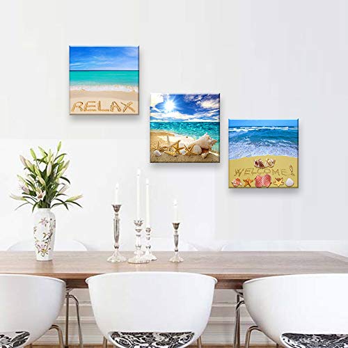 Quadro Spiaggia Conchiglie Sole Decorazione Murale Stampe e Quadri su Tela Stampe Paesaggio Marino Pittura Tela Wall Art Staffa Regalo per Il Tuo Amante Natale e Famiglia Home Room Décor Capodanno