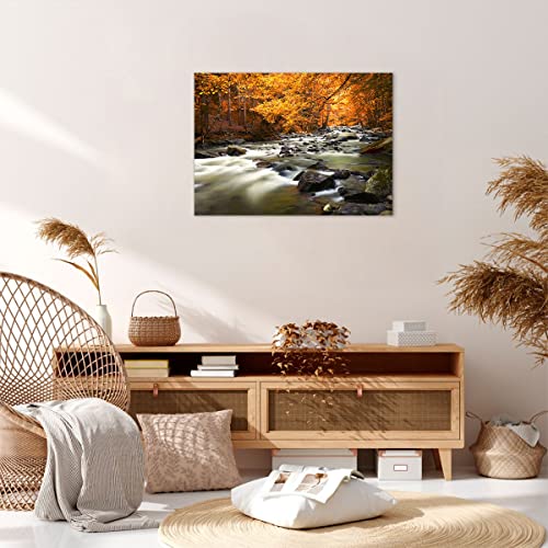 Quadro su Tela Stream Autunno Forrest montagna Stampe da Parete 70x50cm Quadri Moderni Soggiorno Camera da Letto Cucina 1 pezzo Piccoli Decorazione Murale Wall Art Canvas Grafica Immagini AA70x50-2703