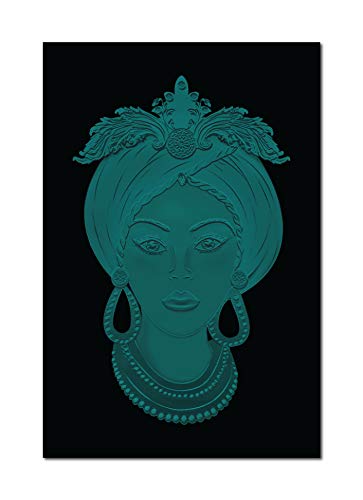 Quadro su Tela, Testa di Moro Donna. Blu Ottanio su Sfondo Nero. Design Siciliano. Misure e/o Colori Personalizzabili su Richiesta. (60 x 90 cm.)