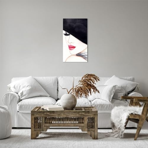 Quadro su Tela Verticale Donna Labbra Cappello eleganza Stampe da Parete 45x80cm Quadri Moderni Soggiorno Camera da Letto 1 pezzo Piccoli Decorazione Murale Wall Art Canvas Immagini PA45x80-2947