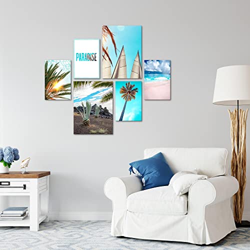 Quadros Spiaggia Mare - Nessuna Cornice Necessaria - Collage Moderno Oceano Blu - Camera Da Letto Del Soggiorno - N022863a
