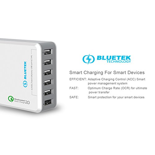Qualcomm Quick Charge - TeckNet 50W, 6 Porte Caricabatterie da Parete, Caricabatterie USB Universale con Tecnologia BLUETEK per Apple iPhone, iPad, iPad mini,Galaxy S6/Edge/Plus, Note 5/4,LG G4, HTC uno M8/M9, Nexus 6 e altri