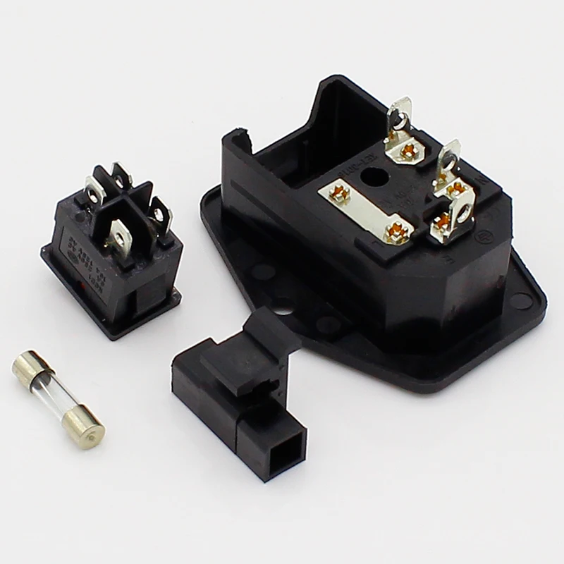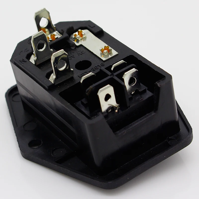 High quality Black Red 10A AC 250V 3 Terminal Power Socket with Fuse Holder NEW