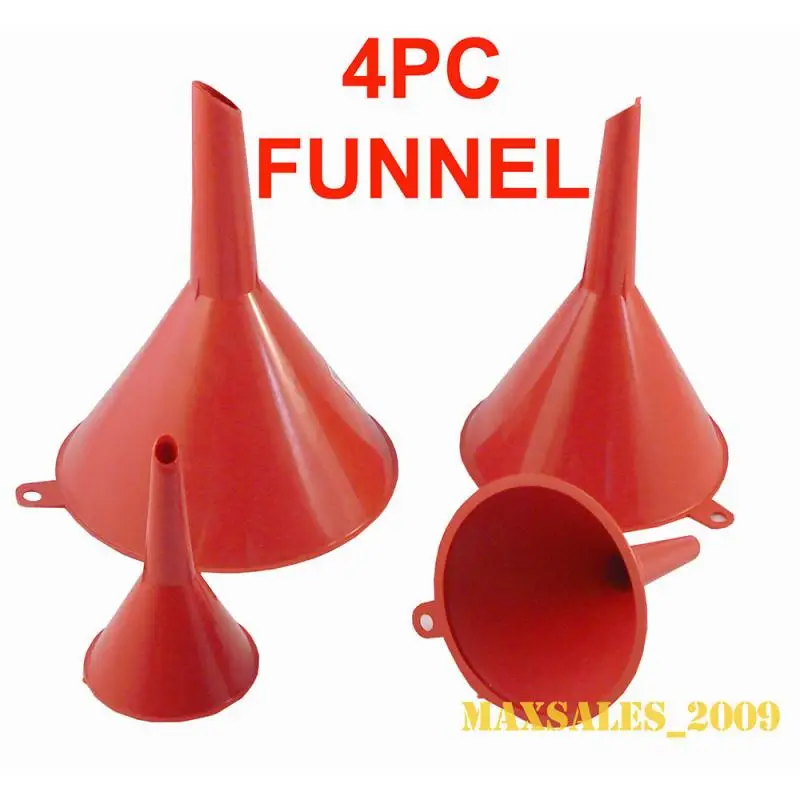 High Quality Durable 4Pcs Mini Red Plastic Funnel Set For Car Oil Gas And Fluids Auto Styling For Car Motorcycle Truck Vehicle