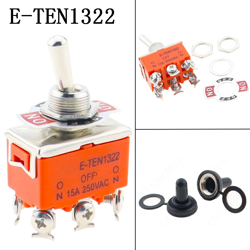 High Quality 1PCS E-TEN1322 15A/250V 6 pin Waterproof Switch Cap On-Off-On Miniature Toggle Switches orange