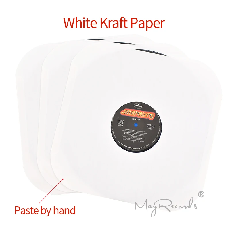 20 High Quality Heavyweight ACID FREE White Kraft Paper Inner Sleeves For 12'' LP Record Vinyl With Hole and Rounded Corners