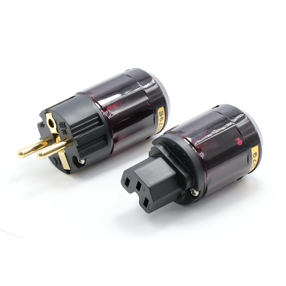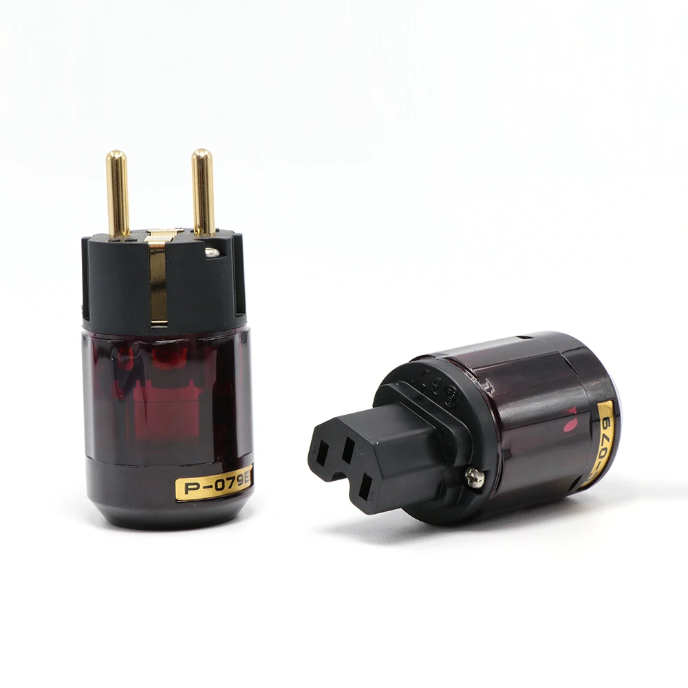 Pair High Quality P-079E+C079 24K Gold-Plated EU power cable plugs SCHUKO Power Plug hifi audio EU version AC power connector