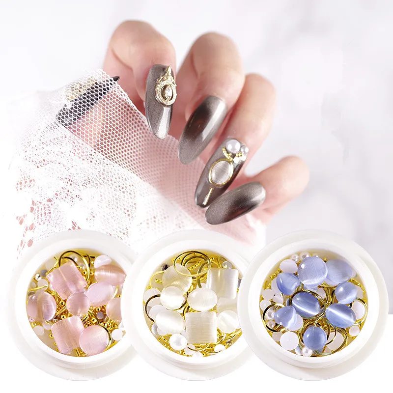 High Quality Shiny Alloy Round Rivet Beads Flat Bottom Diamond Pearl Mixed Rhinestone Nail Decoration Supplies