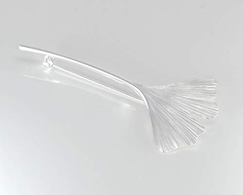 Spilla lunga, in argento, a forma di foglia di Ginkgo. Argento 925 di alta qualità, realizzata a mano.