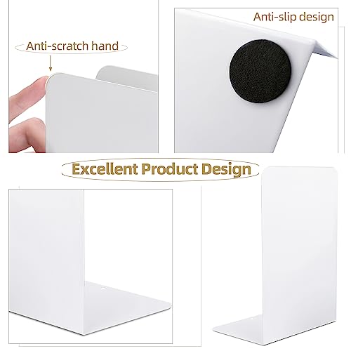 Qualsen 8 Pezzi Fermalibri, Bianco Fermalibri per Mensole, Ferma Libri in Metallo, Ferma Libri per Libreria per Casa, Biblioteca, Scuola, Studenti Regalo