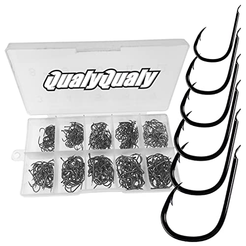 QualyQualy 500 Pezzi Ami da Pesca in Acciaio al Carbonio con Scatola di Plastica (Nero)