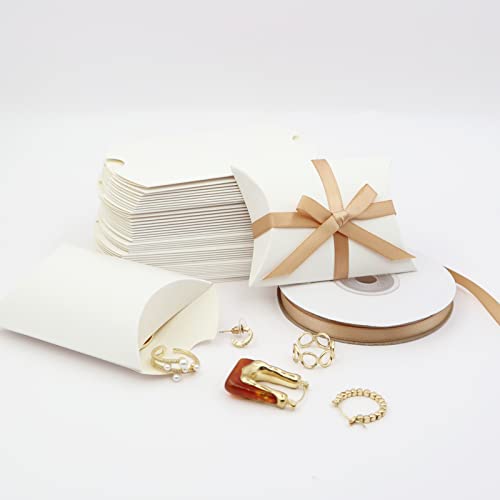 Quanerba 50pz Cuscino Scatoline Confetti Scatoline Portaconfetti in Carta Kraft, Cuscino Confezioni Regalo Bianco con Nastro 30M per Dolcetti, Confetti per Battesimo Comunione Bianco