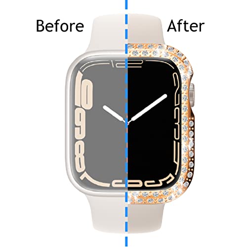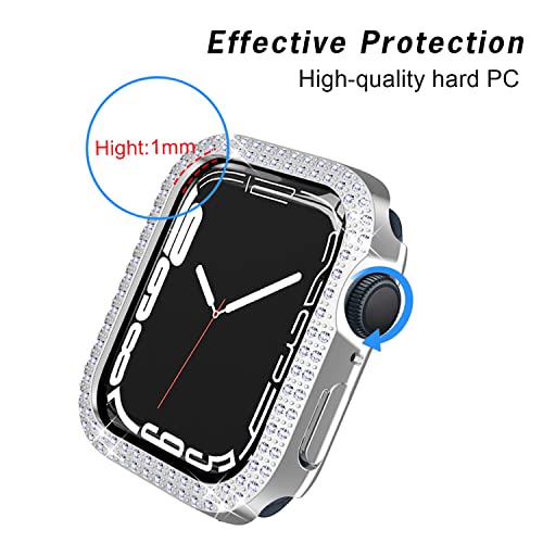 Quanerba (2 Pezzi Cover per Apple Watch 7 41mm 45mm Custodia, PC Rigida Case per iWatch Serie 7, (Senza Proteggi schermo) Anti-Graffio con Strass per Donne (41mm, Argento+oro Rosa)