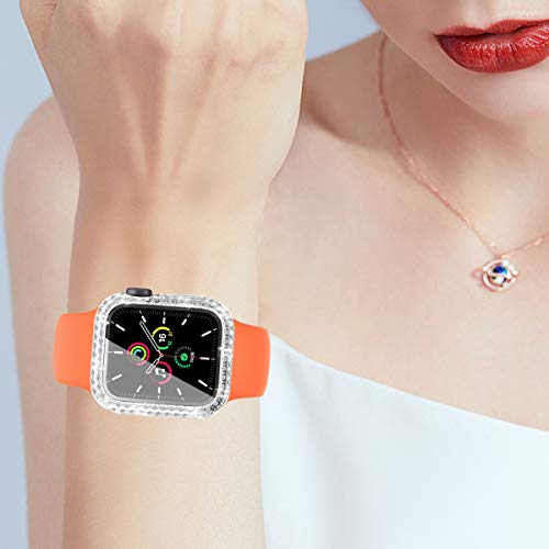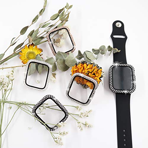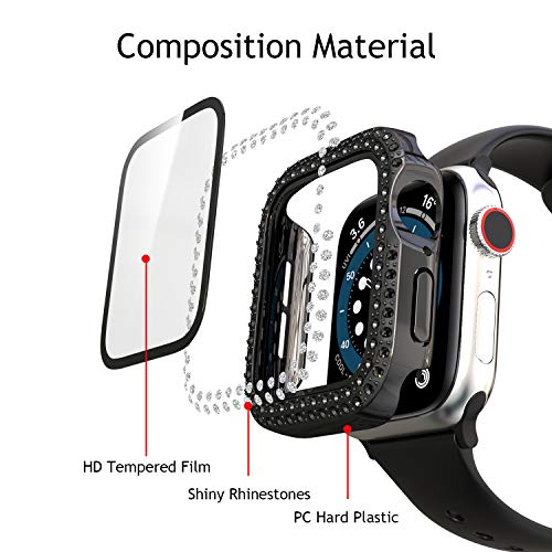 Quanerba (2 Pezzi) per Cover Custodia Apple Watch Serie 6/5/4/SE 40mm 44mm Sottile HD Clear Pellicola Protettiva per Apple Watch con Strass per Donne iWatch (40mm, Argento+Nero)